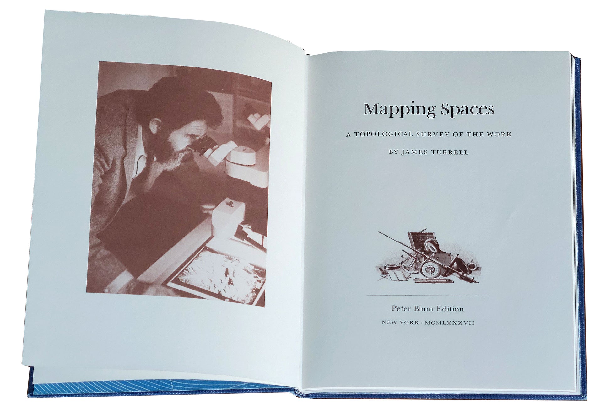 Mapping Spaces, A Topological Survey of the Work. 48 pp. Illustrated throughout with photographs, diagrams and maps including one large loose foldout map inserted in a pocket on the rear paste-down. Small 4to., 240 x 175, bound in publisher’s blue cloth with silver stamping. New York: Peter Blum Edition, 1987.